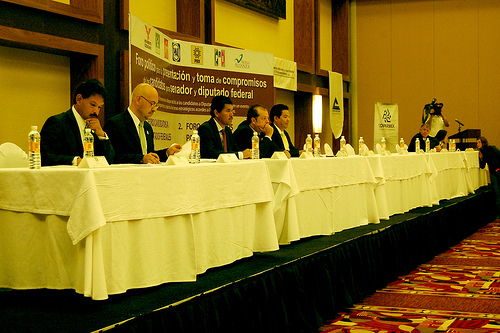 Algunos de los comentarios emanados del evento organizado por el sindicato de empresarios corrieron a cargo de Salvador Hernández Gallegos, candidato del Movimiento Progresista a diputado federal por el III Distrito, quien se mostró a favor de respaldar la reducción de recursos públicos a los todos los partidos políticos.