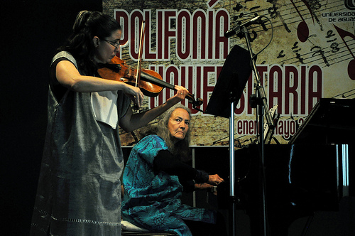 Polifonía universitaria presenta recital de violín y piano con Marta García Renart y Silvia Santamaría, en su temporada enero-mayo en el auditorio Ramón López Velarde del Centro Cultural Universitario. Exhibiendo la última obra de Claude Achilles Debussy, en celebración de 150 años de su nacimiento.