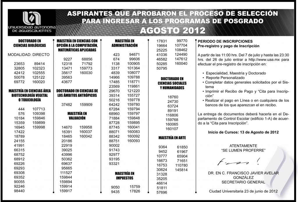 Aspirantes que aprobaron el proceso de selección a programas de posgrado UAA