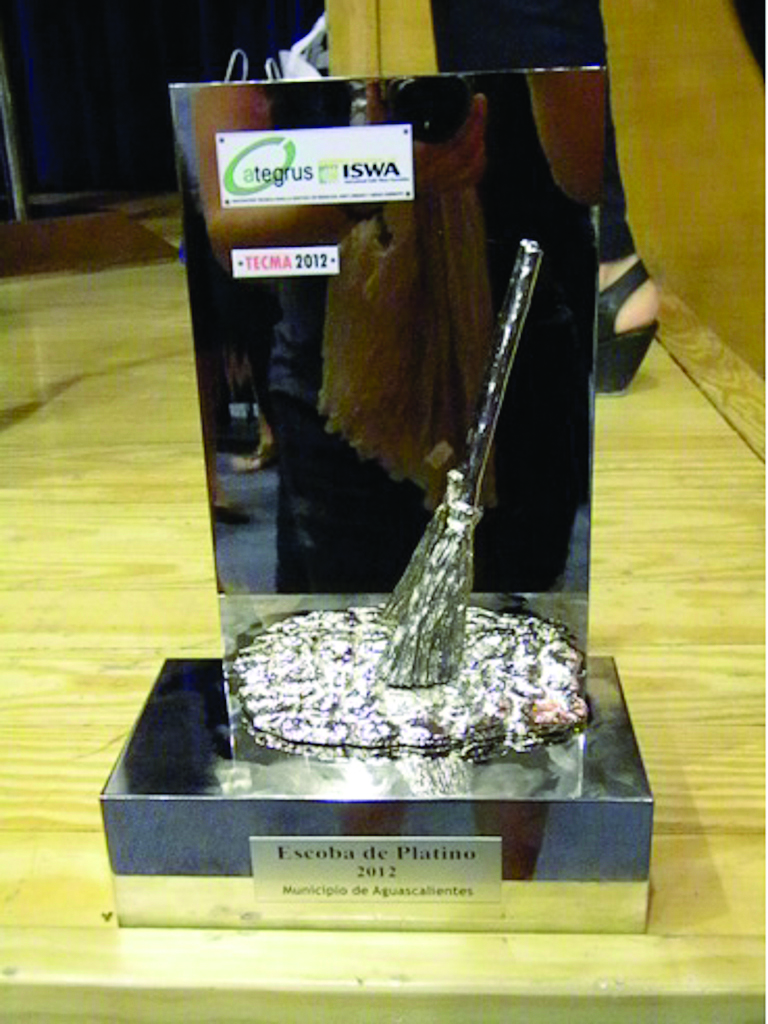 La capital de Aguascalientes obtuvo el reconocimiento internacional Escoba de Platino 2012 al ser considerada una de las ciudades más limpias de América, resultado de su sistema de recolección y procesamiento de residuos sólidos urbanos.