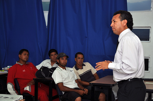 Este martes, El Picas Becerril, director técnico y jugador de equipos como Toluca y Necaxa, estuvo hablando con directores técnicos de nivel profesional de Aguascalientes en la Universidad La Concordia, Campus Paraíso; en el lugar, además de compartir experiencias, habló de cómo influyen los factores externos como la prensa y el público en el jugador mexicano.