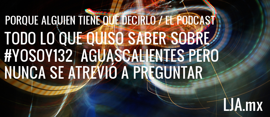 La Jornada Aguascalientes presenta un resumen ágil en formato de radio acerca del acontecer del movimiento #YoSoy132 en Aguascalientes. Los inicios, conflictos y futuro de la movilización estudiantil así como su enfrentamiento con los actantes políticosa nivel local son relatados en esta guía indispensable para comprender la realidad de la entidad. Esto es Porque alguien tiene que decirlo, el podcast de LJA.