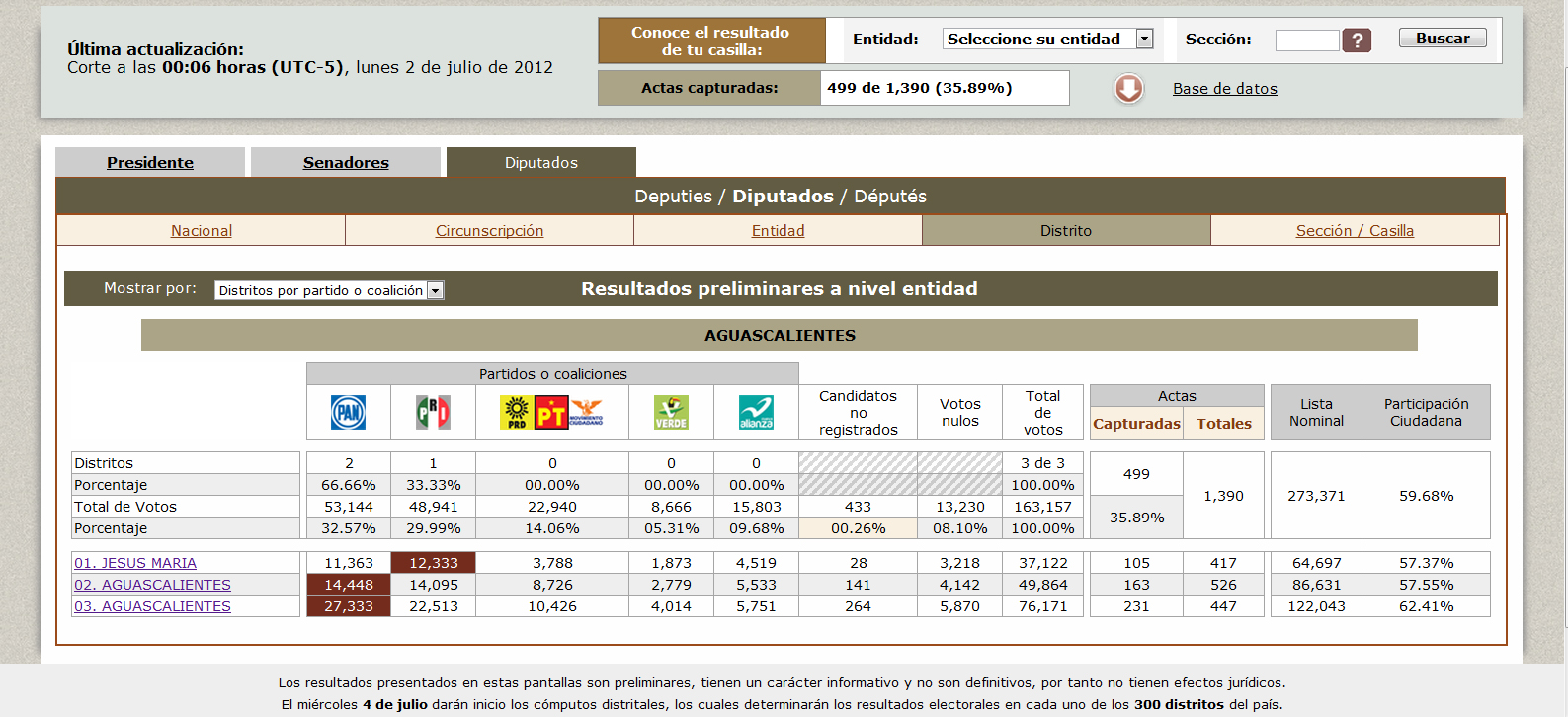 [Elecciones 2012 / Resultados Locales] Distrito I: Pilar Moreno / Distrito II: Teresa Jiménez / Distrito III: González Serna / Senadores: Fórmula PAN