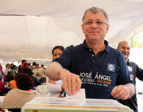 11:45 En el Distrito 03, el más avanzado en cuanto a las actas capturadas, con 45.86 por ciento del total, y una participación, hasta ese momento, del 62.2 por ciento; José Ángel González Serna Paquín, de Acción Nacional adelanta a sus contrincantes con 35.66 por ciento, siendo el resultado más claro hasta entonces, pues supera a su seguidora Patricia Muñoz del PRI con casi 6 puntos porcentuales –29.65 por ciento–. Salvador Hernández del Movimiento Progresista obtuvo 13.71 por ciento de los votos, después Clara Delgadillo de Nueva Alianza con 7.51 y Claudio González con 5.35 por ciento.