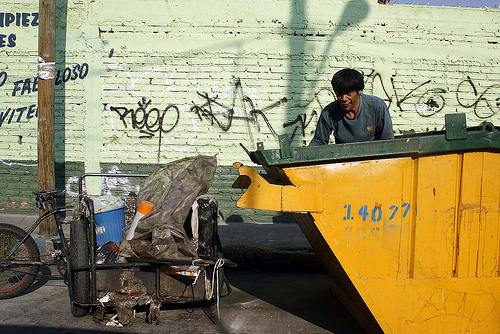 Jesús Sánchez Alcántara, quien es presidente de la Unión de Recicladores de Material Reciclable de Aguascalientes A.C., mencionó que la inconsciencia de los patrones, al no dar trabajo a las personas mayores de 40 años, ha provocado que la mala situación económica empuje a mucha gente a tomar la decisión de abandonar los prejuicios y decidirse a buscar la supervivencia en el interior de un contenedor.