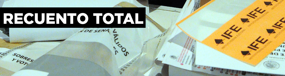 El consejero presidente del Consejo Local del IFE en Aguascalientes, Ignacio Ruelas Olvera, habló sobre el recuento de votos que se estará efectuando en los cómputos distritales, acto que establece el Código Federal de Instituciones y Procedimientos Electorales (Cofipe), cuando la diferencia, dijo, entre el primero y el segundo lugar en la elección es menor a un punto porcentual o si el número de votos nulos es mayor al que existe entre el primero y el segundo; así como también si “hay muestras de raspaduras o enmendaduras o paquetes que fueron ultrajados; si todos los votos están a favor de un partido o candidato”, entre otros, debe darse un recuento de los votos, señaló.