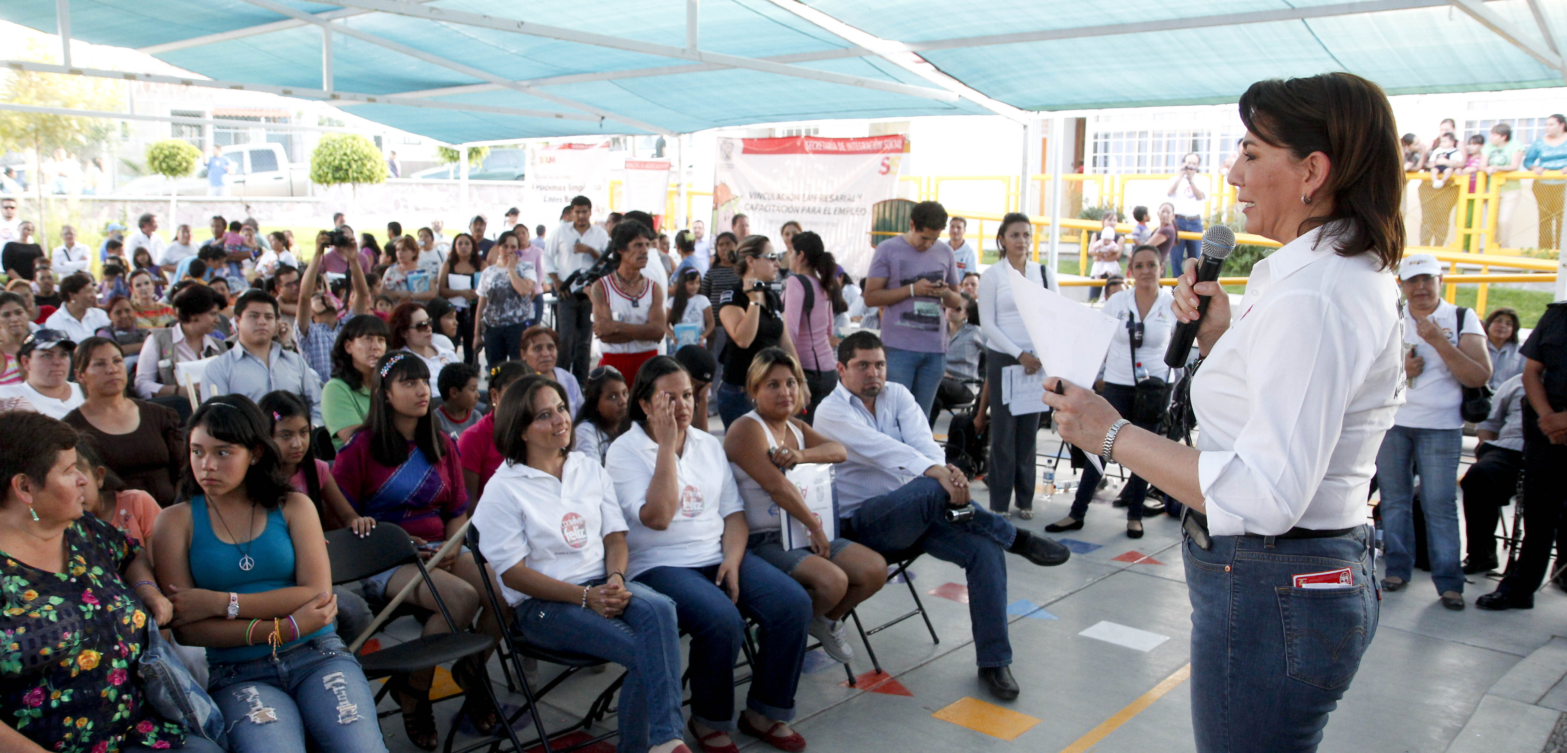 Lorena Martínez, alcaldesa de Aguascalientes, encabezó las actividades de arranque del programa “Convivencia y Seguridad Ciudadana” en la colonia Villas de Nuestra Señora de la Asunción, sector Alameda, a fin de consolidar la estrategia de recomposición del tejido social en esta zona de la capital, donde se instalaron diferentes talleres y mesas de trabajo realizadas en base al modelo de acupuntura urbana. Posteriormente, la alcaldesa y su equipo de trabajo se trasladaron al parque “Villas de Nuestra Señora de la Asunción N° 3” para realizar un recorrido de supervisión de las obras de rehabilitación, con lo que se dignificó este espacio mediante la instalación de cuatro cisternas, la sustitución de luminarias, reparación y pintura de 12 mil metros lineales de guarnición, podas de altura y de raíz, así como limpia y desmalezado en las áreas verdes de la colonia, además de la construcción de un muro e instalación de malla protectora en las canchas de futbol, así como 2 mil metros cuadrados de bacheo