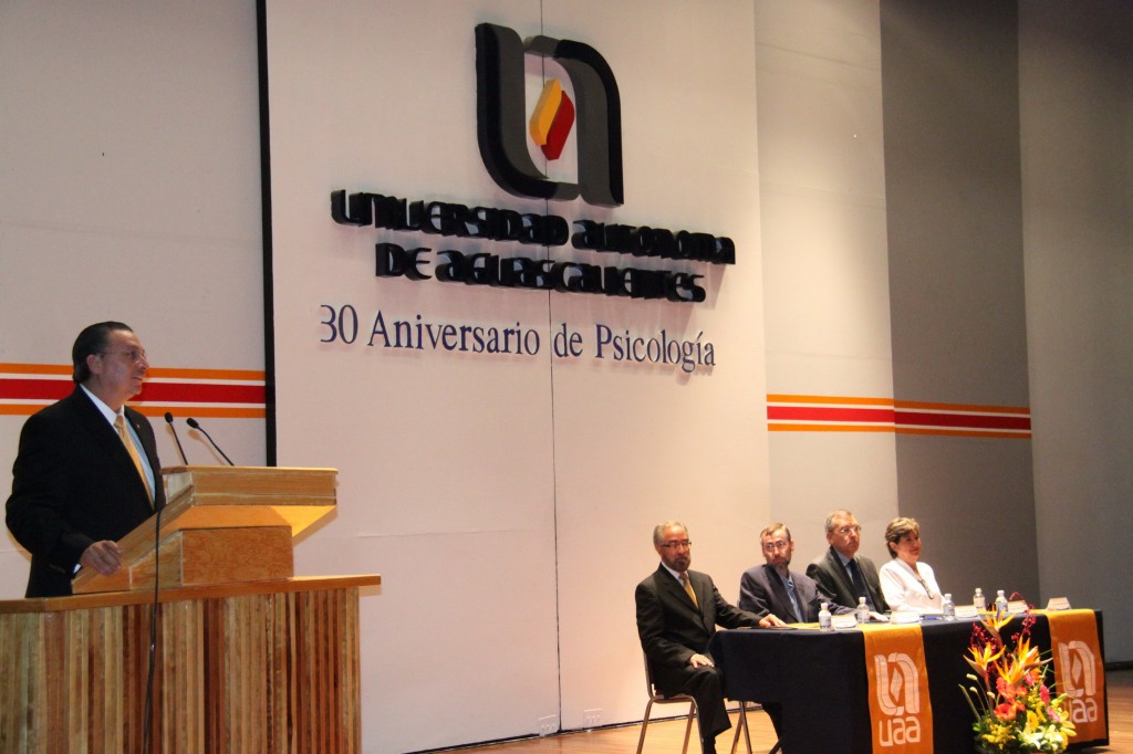 En su intervención el rector destacó que hace tres décadas se tomó la acertada determinación de formar el Departamento de Psicología para darle un fuerte apoyo en la formación integral de miles de jóvenes que se han preparado en la UAA. Recalcó que la psicología es fundamental para revelar las incógnitas de nuestro interior, reflexionar y entender el gran misterio de la mente humana y así poder contar con los conocimientos necesarios que nos lleven a comprender y contar con mayores herramientas para el estudio de la conducta del hombre.