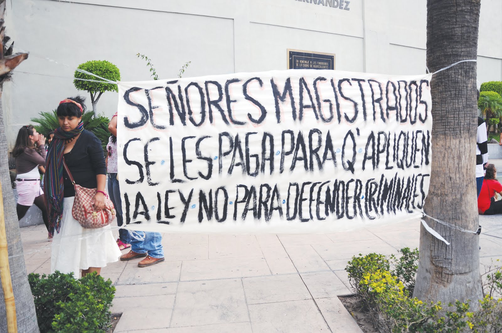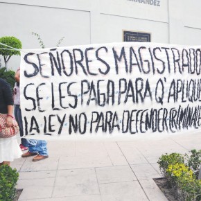 “Señores magistrados, se les paga para que apliquen la ley, no para que defiendan criminales”, se consignaba en una de las pancartas mostradas durante el desfile que circundó plaza de la Patria, donde la ciudadanía se ha congregado por los festejos de la Romería de la Virgen de la Asunción.
