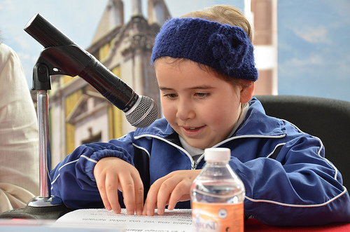 La niña invidente Mariana Hernández Martínez, de nueve años de edad, fue invitada por Blanca Rivera Río de Lozano a tomar asiento en el presídium, que compartía, además del jefe del Ejecutivo estatal, con la coordinadora del evento, Martha Medina Carlos; Patricia Guajardo Garza, directora editorial del Instituto Cultural y de la Bibliotecas Públicas del Estado; y Jesús Martín Andrade Muñoz, director del Instituto de la Cultura de Aguascalientes (ICA).