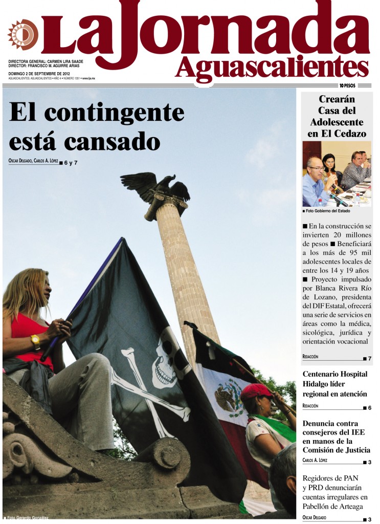 Hemeroteca Actualizado: 02/09/2012 La Jornada Aguascalientes [02/09/2012] Por La Jornada Aguascalientes 02/09/2012 Share FacebookTwitterPinterestWhatsApp La Jornada Aguascalientes Te podría interesar HemerotecaStaff - 05/12/2025Aguascalientes, tercera entidad con más investigaciones por faltas administrativas y más en LJA.MX, edición 5/12/2025 HemerotecaRedacción - 04/12/2025Leonardo Montañez presenta su Primer Informe al frente de la Presidencia Municipal y más en LJA.MX, edición 4/12/2025 HemerotecaRedacción - 03/12/2025Juan Carlos Arredondo, próximo rector de la UAA y más en LJA.MX, edición 3/12/2025 HemerotecaRedacción - 02/12/2025Violencia digital y MeToo evidencian pendientes urgentes para la igualdad en México y más en LJA.MX, edición 2/12/2025 La edición del día de hoy Descarga el pdf: TagsLJA Share FacebookTwitterPinterestWhatsApp RELACIONADOS No hay razón para bloqueos en cruces internacionales: Secretaría de Gobernación Sociedad y Justicia Staff - 05/12/2025 0 SEGOB afirmó que ya atendió planteamientos de productores sobre la nueva Ley de Aguas y mantiene mesas permanentes de diálogo El Gobierno federal... Read more La coordinación estatal de becas para el bienestar informó avances del operativo de entrega de tarjetas Sociedad y Justicia Staff - 05/12/2025 0 42.12% de avance en reposiciones de tarjetas Operativos en 192 escuelas y más de 14 mil tarjetas por entregar Expansión histórica del programa... Read more Avanza construcción de los trenes del norte: Se licitarán dos tramos del tren Saltillo-Nuevo Laredo Sociedad y Justicia Staff - 05/12/2025 0 Este 5 de diciembre se publicará la licitación del tramo A del tren Saltillo-Nuevo Laredo y está en proceso de licitación su tramo... Read more Claudia Sheinbaum encabeza entrega de escrituras a 354 familias reubicadas del Chiquihuite Sociedad y Justicia Staff - 05/12/2025 0 En cumplimiento a un compromiso, 210 viviendas fueron reubicadas en Tlalnepantla, Estado de México, y 144 en la alcaldía Gustavo A. Madero Las... Read more Teresa Jiménez impulsa alianzas internacionales estratégicas en Aguascalientes Gob Ags Staff - 05/12/2025 0 Para que más productos y empresas de Aguascalientes lleguen a nuevos mercados, la gobernadora Teresa Jiménez ha impulsado alianzas estratégicas con Canadá, Singapur... Read more Presentan reforma para garantizar la protección integral de la niñez con padres en centros penitenciarios Política Staff - 05/12/2025 0 Se reforma la denominación del Capítulo IX y el artículo 126 Bis de la Ley de los Derechos de Niñas, Niños y Adolescentes... Read more Previous articleRocko en LJANext articleLa Purísima… Grilla [02/09/2012] - Advertisement - - Advertisement - Recientes en LJA.MX Sociedad y JusticiaStaff - 05/12/2025No hay razón para bloqueos en cruces internacionales: Secretaría de Gobernación SEGOB afirmó que ya atendió planteamientos de productores sobre la nueva Ley de Aguas y mantiene mesas permanentes... Sociedad y Justicia La coordinación estatal de becas para el bienestar informó avances del operativo de entrega de tarjetas Staff - 05/12/2025 Sociedad y Justicia Avanza construcción de los trenes del norte: Se licitarán dos tramos del tren Saltillo-Nuevo Laredo Staff - 05/12/2025 Sociedad y Justicia Claudia Sheinbaum encabeza entrega de escrituras a 354 familias reubicadas del Chiquihuite Staff - 05/12/2025 Gob Ags Teresa Jiménez impulsa alianzas internacionales estratégicas en Aguascalientes Staff - 05/12/2025 - Advertisement - MÁS INFORMACIÓN EN LJA.MX Juntas somos más fuertes Cultura Edilberto Aldán - 13/12/2019 Ciclo de Actividades LJA.MX de Equidad y Paridad | Programa General Portada Staff - 10/12/2019 LJA 24/11/2019 Hemeroteca Redacción - 24/11/2019 LJA 25/11/2019 Hemeroteca Redacción - 24/11/2019 - Advertisement -