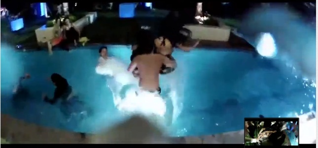 ¡Animo princeso! dice a la cámara uno de los invitados al inicio del video y alguien que viene detrás de él, apunto: “nos vamos a poner hasta el hocico”, y sí, de eso trata la fiesta, de ponerse hasta el hocico y terminar arrojándose a la alberca, corretear en los jardines bajo la sombra de un Mini Cooper al que sostiene una grúa y funciona a manera de fuente (como en la película Proyecto X).