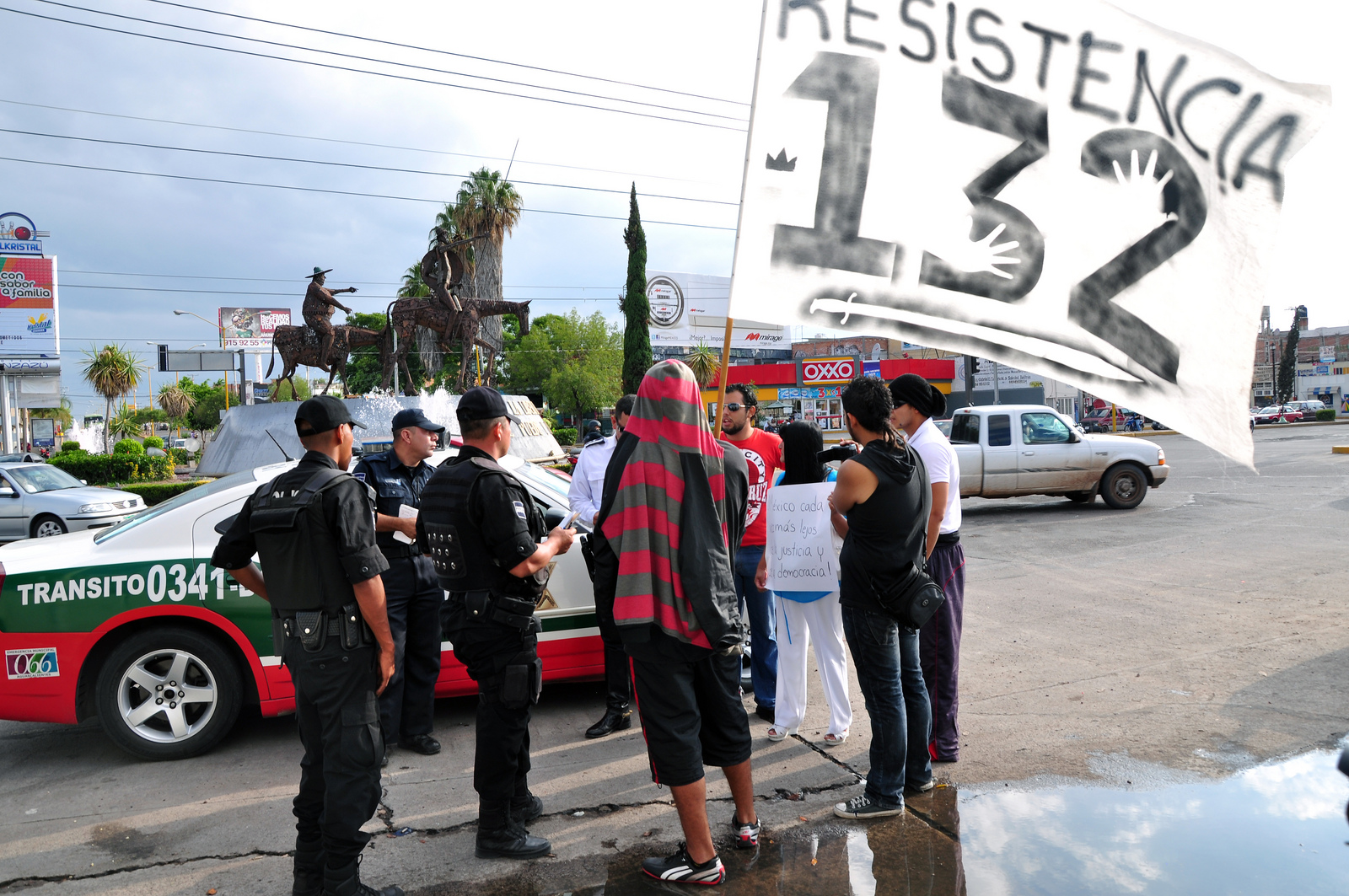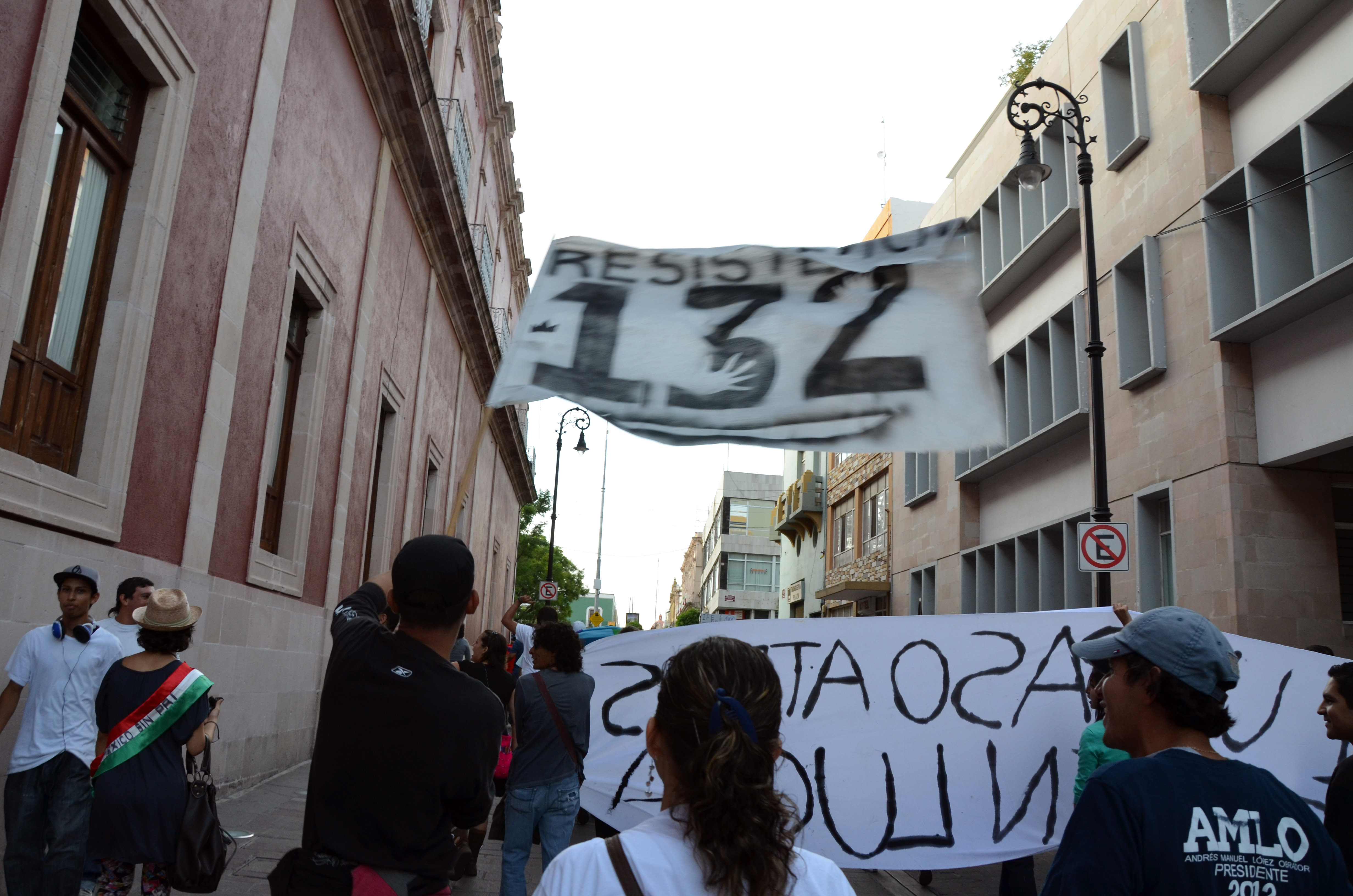Por medio de otra marcha pacífica, el movimiento #YoSoy132 Aguascalientes se trasladó al primer cuadro de esta capital para protestar contra las autoridades electorales mexicanas, por lo que consideró un nuevo asalto a la democracia, el cual se suma a los de las presidenciales de 1988 y 2006.