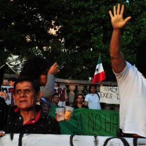 La validación de Enrique Peña Nieto como presidente electo, refirieron los participantes y sus pancartas, debe motivar frentes de oposición permanente. “El atraco, la violación y la humillación con las cuales coronaron el jueves pasado la tumba de la democracia en México no pasarán desapercibidos”, se mencionó en uno de los discursos, en repudio al fallo del Tribunal Electoral del Poder Judicial de la Federación.
