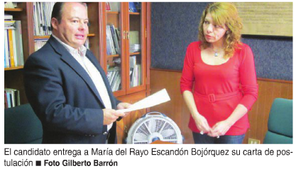Correspondió a María del Rayo Escandón Bojórquez, directora de la Cámara Nacional de Comercio, Servicios y Turismo (Canaco-Servytur) Aguascalientes, habilitada con la representación de la Comisión Electoral del CCE, recibir el registro del también ex presidente de la Cámara Mexicana de la Industria de la Construcción (CMIC), Godínez Antillón, “en tiempo y forma”.