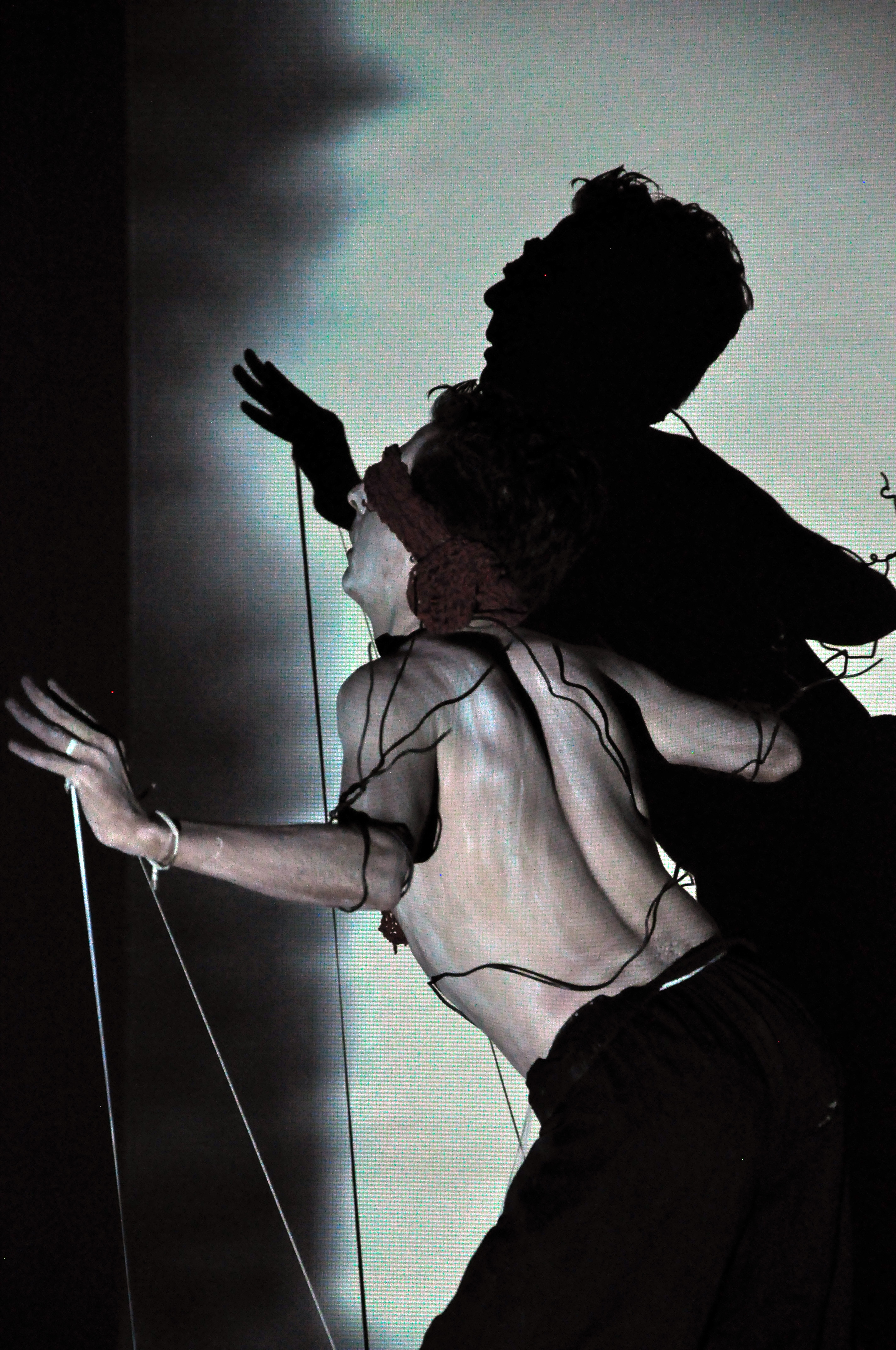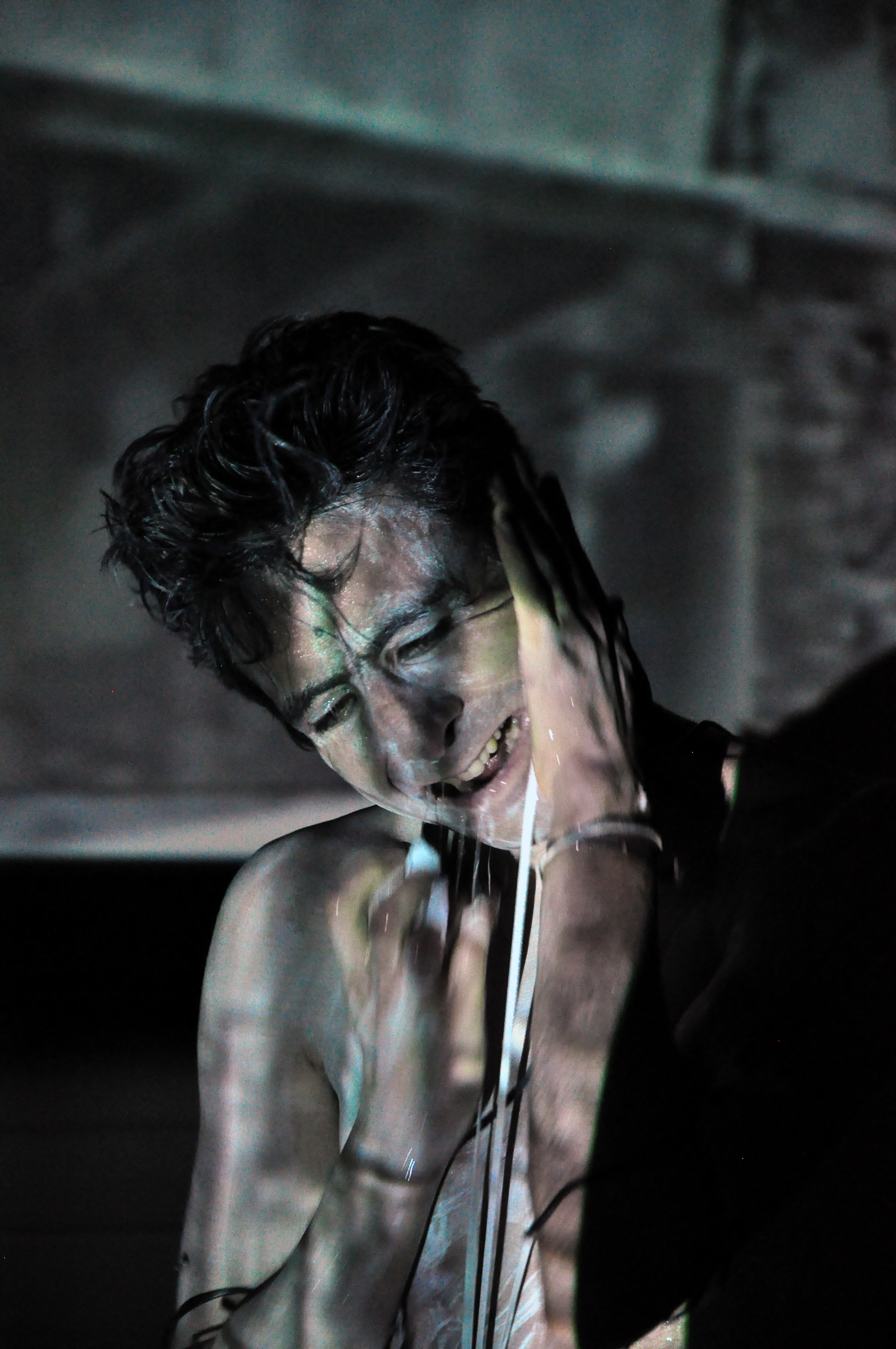 Vistiendo tan sólo con pantalones rotos, pintura blanca y apoyado de ligas amarradas a pies y manos, este artista cautivó mezclando la danza, las artes visuales y la música, con rasgos dolorosos y con algo de locura.