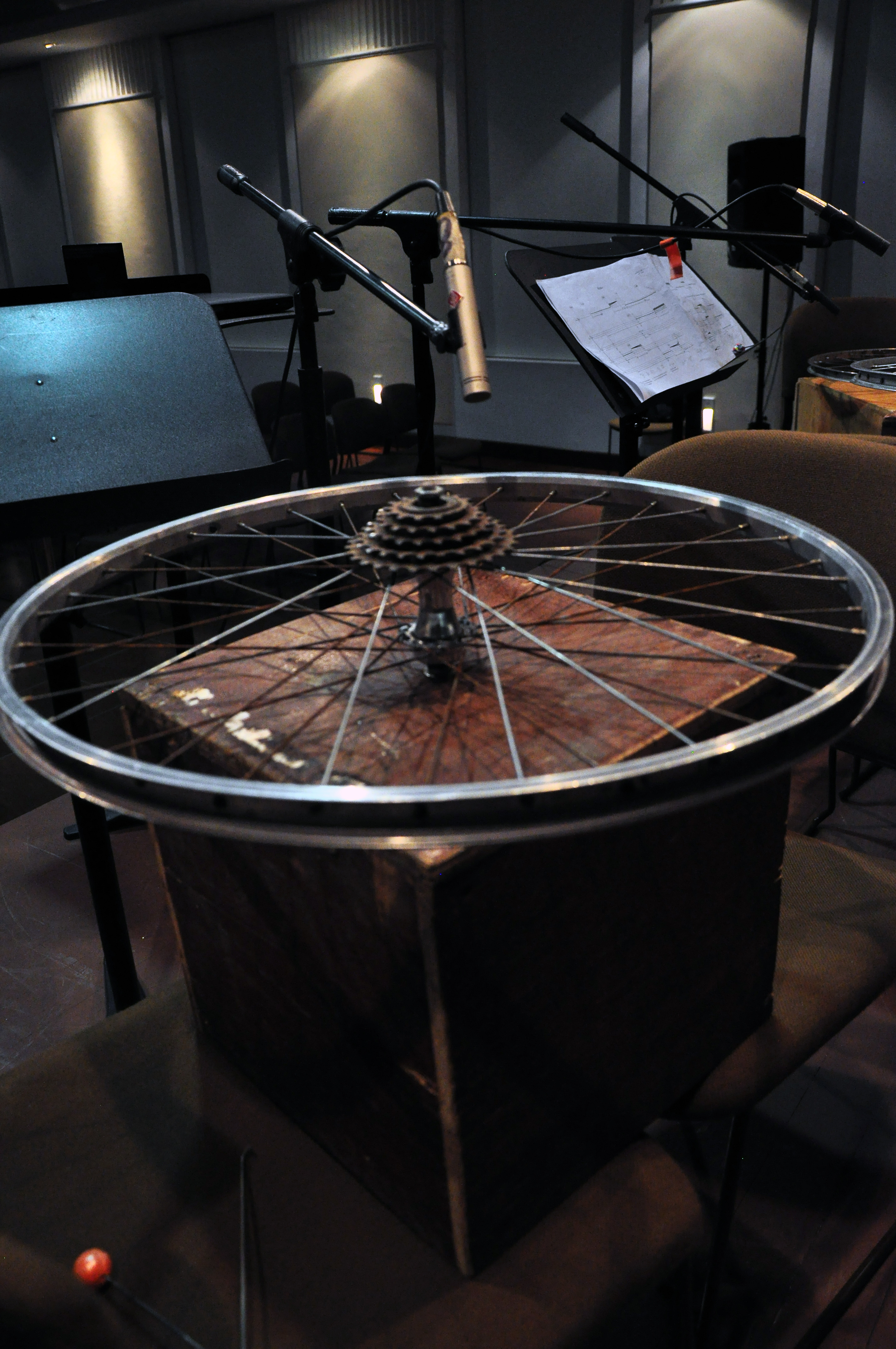 Concierto a base de rines de bicicleta, caja de madera y apoyo electrónico