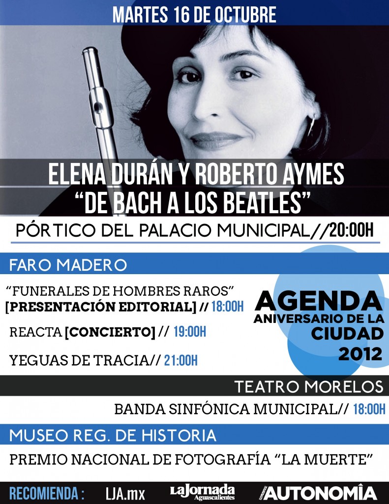 La Jornada Aguascalientes, /AUTONOMÍA y LJA.mx tienen la agenda curada para el martes 16 de octubre.
