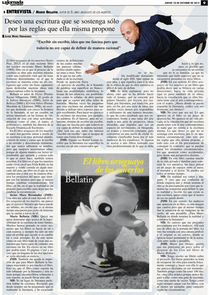 JMH: En ese sentido El libro uruguayo de los muertos es un libro que podría decir que se bifurca en varias direcciones; hacia tu vida privada (que es parte también de tu obra), hacia la vinculación que tu obra literaria tiene con el arte contemporáneo, con el teatro. ¿Hasta dónde se puede expandir la literatura, cuáles son sus fronteras, sus límites?