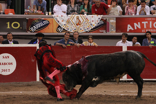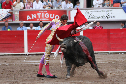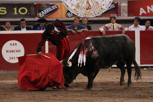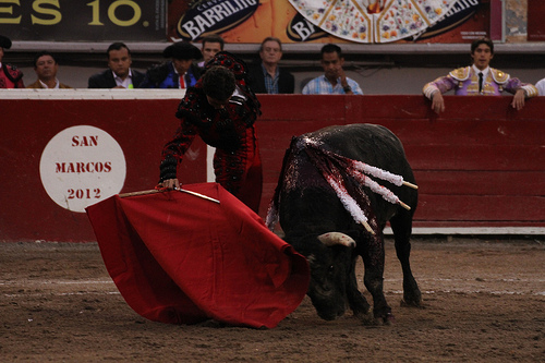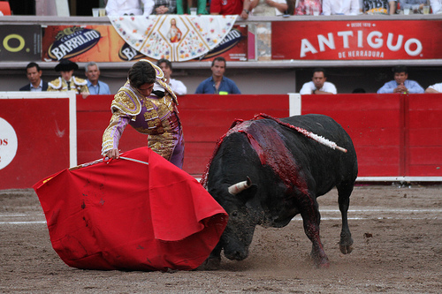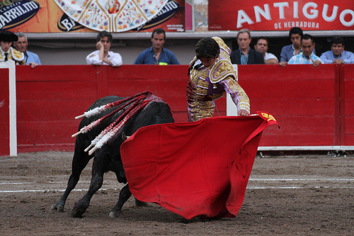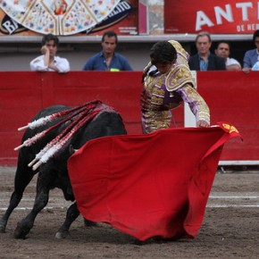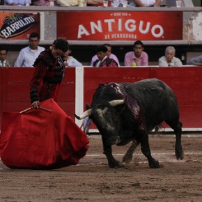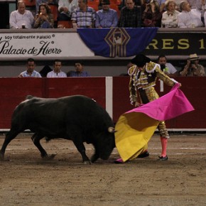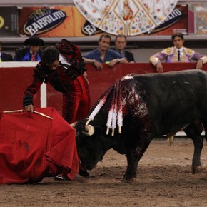 Si decoroso con la capa, empecinado con la sarga Juan Pablo Sánchez (palmas y pitos); sólo ello fue motivo de que lograra cierto partido al bovino primero de su lote, soldado que estuvo siempre en la superficie. Y en momentos extrajo frescas gotas de agua de aquel desierto reseco. Vino después un espadazo caído. Cumpliendo solamente con el avío rosa, ya casi hábito en él, armó la tela roja para sobre ambos flancos verse obstinado –una de sus virtudes–, sin embargo no encontró ni el espacio ni el ritmo. Hoy ni su pregonado temple se vio ante aquel marmolillo al que pinchó abundantes veces.