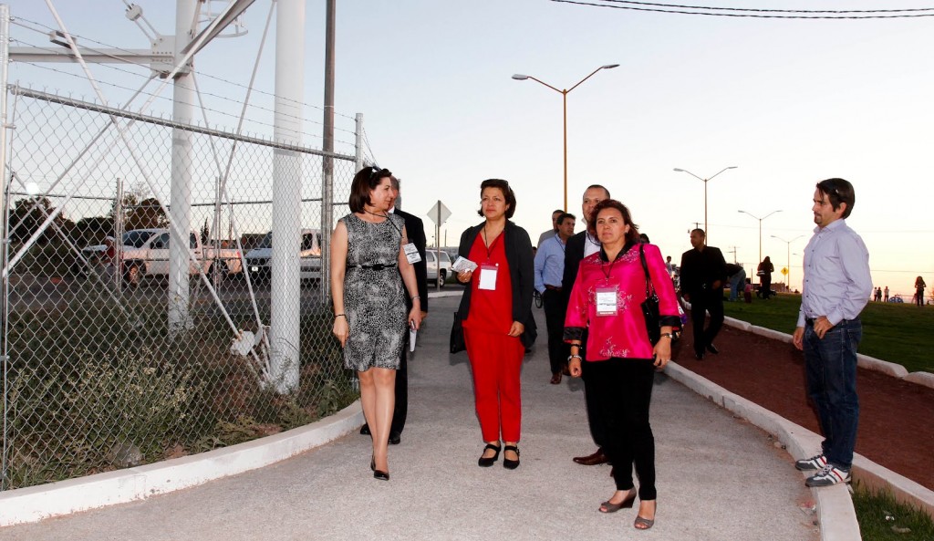Lorena Martínez, alcaldesa de Aguascalientes, presentó a sus homólogas electas de los municipios de Toluca y Zinacantepec, Estado de México, así como funcionarios del Ayuntamiento de Chihuahua, los beneficios sociales y ambientales que ha traído consigo el desarrollo del proyecto Línea Verde para miles de habitantes del oriente de la ciudad.