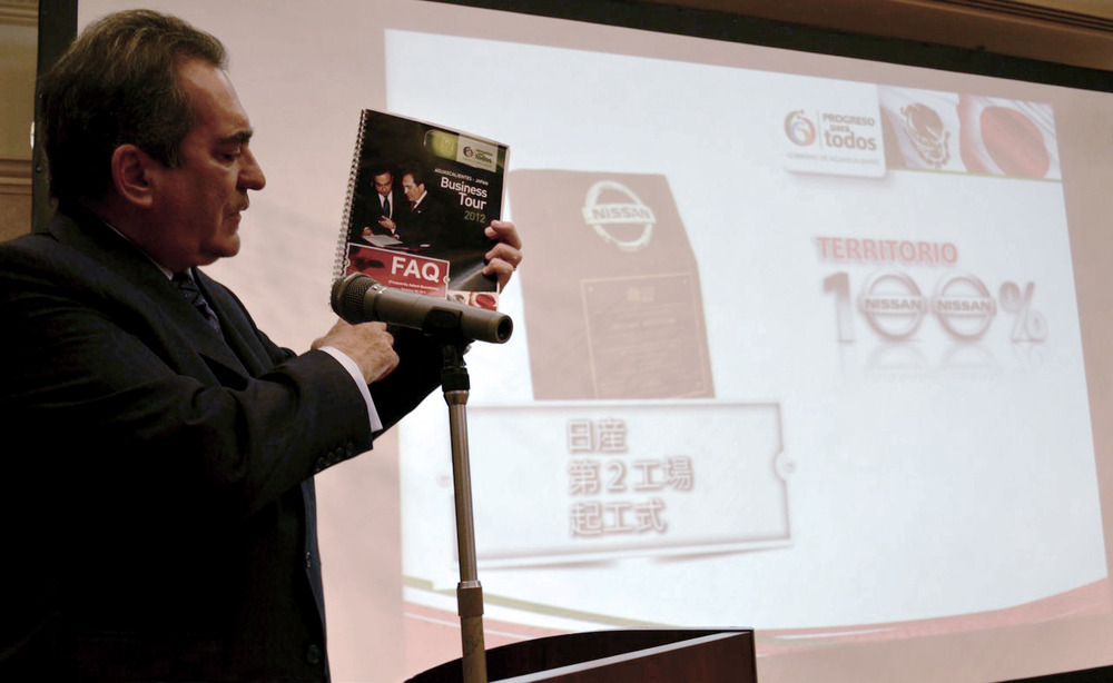 Los resultados obtenidos en la gira por Japón de Carlos Lozano de la Torre, gobernador del estado, derivarán en un mayor número de inversiones. El mandatario estatal se mostró optimista por los resultados que incluyen la firma de cartas compromiso por altos ejecutivos de las empresas Unipres Corporation y Fuji Kiko, mediante las cuales manifiestan su clara intención de instalarse o incrementar la inversión ya existente en Aguascalientes.