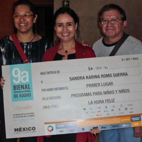 Sandra Karina Romo, productora radiofónica de Aguascalientes, ganó el primer premio en la categoría de Radio para niñas y niños de la novena Bienal Internacional de Radio, que terminó en la Ciudad de México el sábado pasado, con el programa resultante de un taller con niñas y niños sordos.
