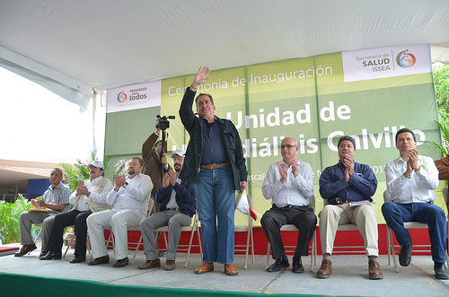 Recordó que hace 18 años, en tiempos del gobernador Otto Granados, le tocó traer a una empresa a Calvillo. Saludó, en ausencia, al padre Ignacio Calvillo Román, cuya capilla de muros color rosa y dedicada a la virgen del Carmen se hallaba a unos metros del lugar del evento, una pequeña plaza de armas, mientras el secretario de Salud explicaba a reporteros las características de la Unidad de Hemodiálisis que se visitaría enseguida. En este punto, la comitiva almorzó antes de continuar a la Unidad de Hemodiálisis, donde Lozano se conmovería con el caso del paciente Fernando Miramontes Huerta, a quien le ofreció ayuda adicional para atender su padecimiento.