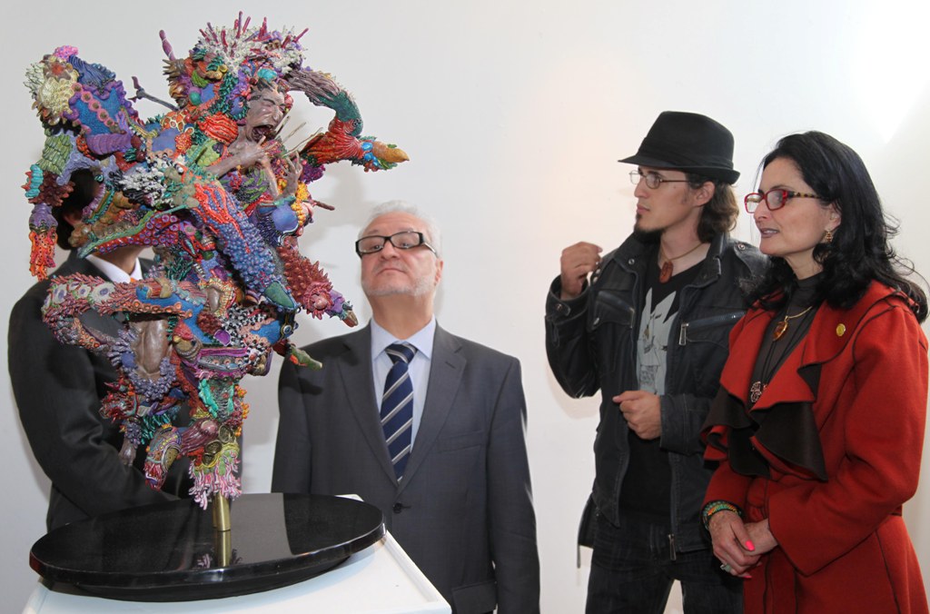 Blanca Rivera Río de Lozano, presidenta del Sistema Estatal para el Desarrollo Integral de la Familia (DIF), acompañada de Martín Andrade Muñoz, director general del Instituto Cultural de Aguascalientes (ICA), inauguró la exposición escultórica del artista Juan Carlos Mercado Díaz de León, egresado de la Licenciatura en Artes Visuales, en el marco del Primer Festival Cultural Universitario, que se realiza en la Universidad de las Artes.