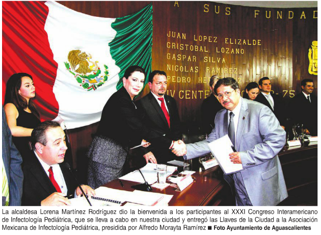 Luego de reconocer el apoyo que brinda a los niños de escasos recursos, algunos de ellos sometidos al abuso y al maltrato, la alcaldesa Lorena Martínez Rodríguez entregó las Llaves de la Ciudad a la Asociación Mexicana de Infectología Pediátrica, reunida aquí en el estado, en el XXXI Congreso Interamericano de Infectología Pediátrica.