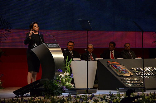 “En mi calidad de presidenta de la Conferencia Nacional de Seguridad Pública Municipal, le expreso que celebro con gusto que nuestro presidente de la República, licenciado Enrique Peña Nieto, haya anunciado como la primera de sus 13 decisiones presidenciales la creación del Programa Nacional de Prevención del Delito, orientado a la reconstrucción del tejido social. Iniciativa a la que orgullosamente hemos contribuido”.