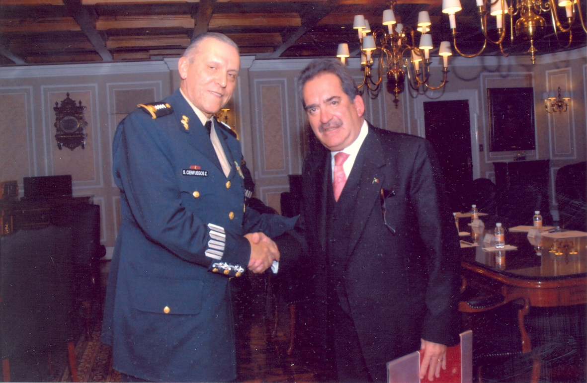 Salvador Cienfuegos Zepeda, secretario de la Defensa Nacional, al recibir a Carlos Lozano de la Torre, gobernador del estado, sostuvo que Aguascalientes es un ejemplo a seguir en el país por la aplicación y operación del Mando Único de Policía.