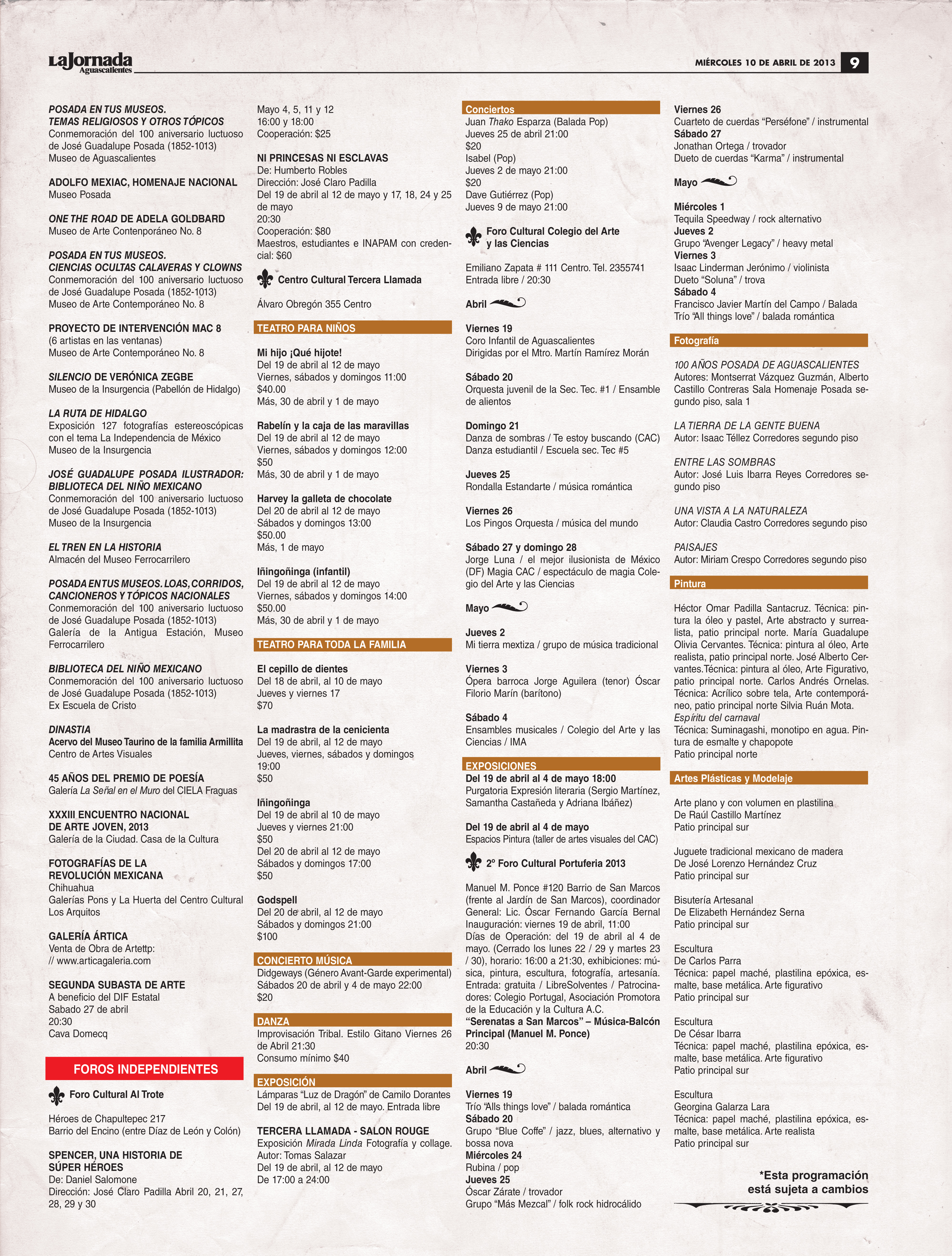 Las artes plásticas cobran vida en los museos y galerías del estado con la presentación de 16 exposiciones, la mayoría de ellas inspiradas en la diversidad de obra y temática del grabador aguascalentense José Guadalupe Posada a 100 años de su muerte.