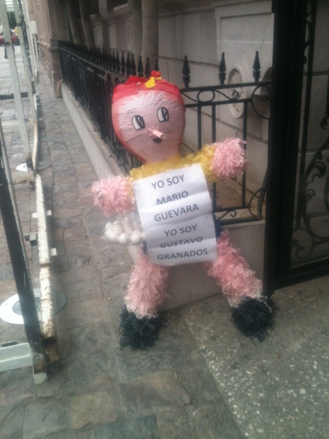 Jorge López, presidente del PAN en Aguascalientes, se manifiestó al medio día fuera del Congreso del Estado. Afirma que el priísta Mario Guevara Palomino “fue sometido por su partido para dar un albazo en cuanto al impuesto a la plusvalía”.