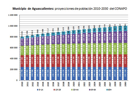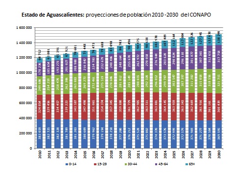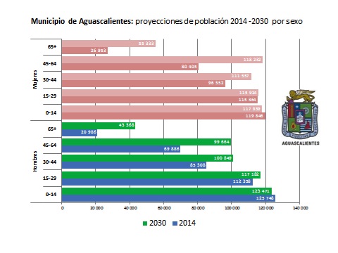 Para el 2030 la población estatal ascenderá a millón y medio de personas, y se proyecta que en esas mismas fechas el municipio de Aguascalientes tendrá un millón de habitantes. Para entonces, ya serán 106 mujeres por cada cien hombres, lo que habla de un agravamiento en la intensidad migratoria, y/o de un número mayor de muertes juveniles (accidentes, suicidio) que son más propias de los varones que de las mujeres.