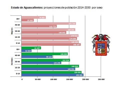Aguascalientes: Pirámides de población 2014 y 2030 (CONAPO)