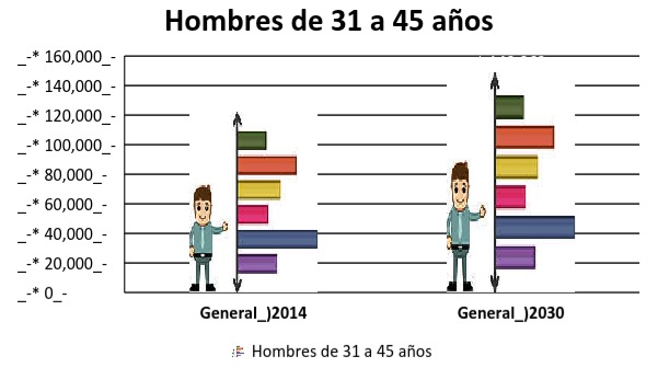 - El grupo conformado por hombres y mujeres de 31 a 45 años, que actualmente asciende a 259 mil 348 habitantes, seguirá creciendo mediante incrementos anuales superiores a los 3 mil efectivos, será el grupo protagonista del Aguascalientes de las próximas décadas. Superará las 300 mil personas para el 2026, y continuará siendo mayoritariamente femenino (12% superior al masculino).
