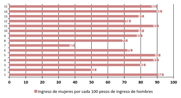 1. Por cada 100 pesos que gana un hombre por su trabajo, una mujer gana en promedio 75.