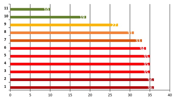 México: lugares ocupados dentro de la OCDE 2013 (de36)