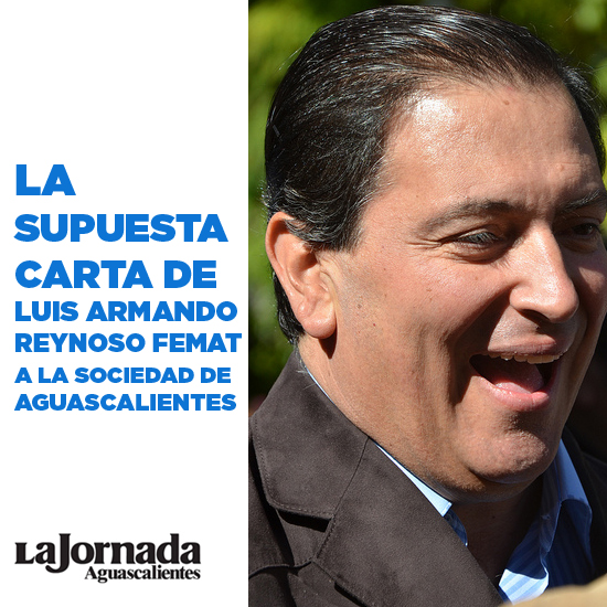 A la redacción de La Jornada Aguascalientes llegó una carta supuestamente redactada y firmada por Luis Armando Reynoso Femat, desde la cuenta de correo [email protected] En ella, se solicita la distribución de la misiva debido a que los medios de comunicación “se han cerrado”.