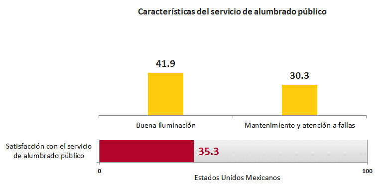 En Alumbrado Público, se estima que en relación con el servicio de alumbrado público, el 41.9% de la población considera que las calles están bien iluminadas, y el 30.3% que se cuenta con mantenimiento y atención inmediata de fallas.