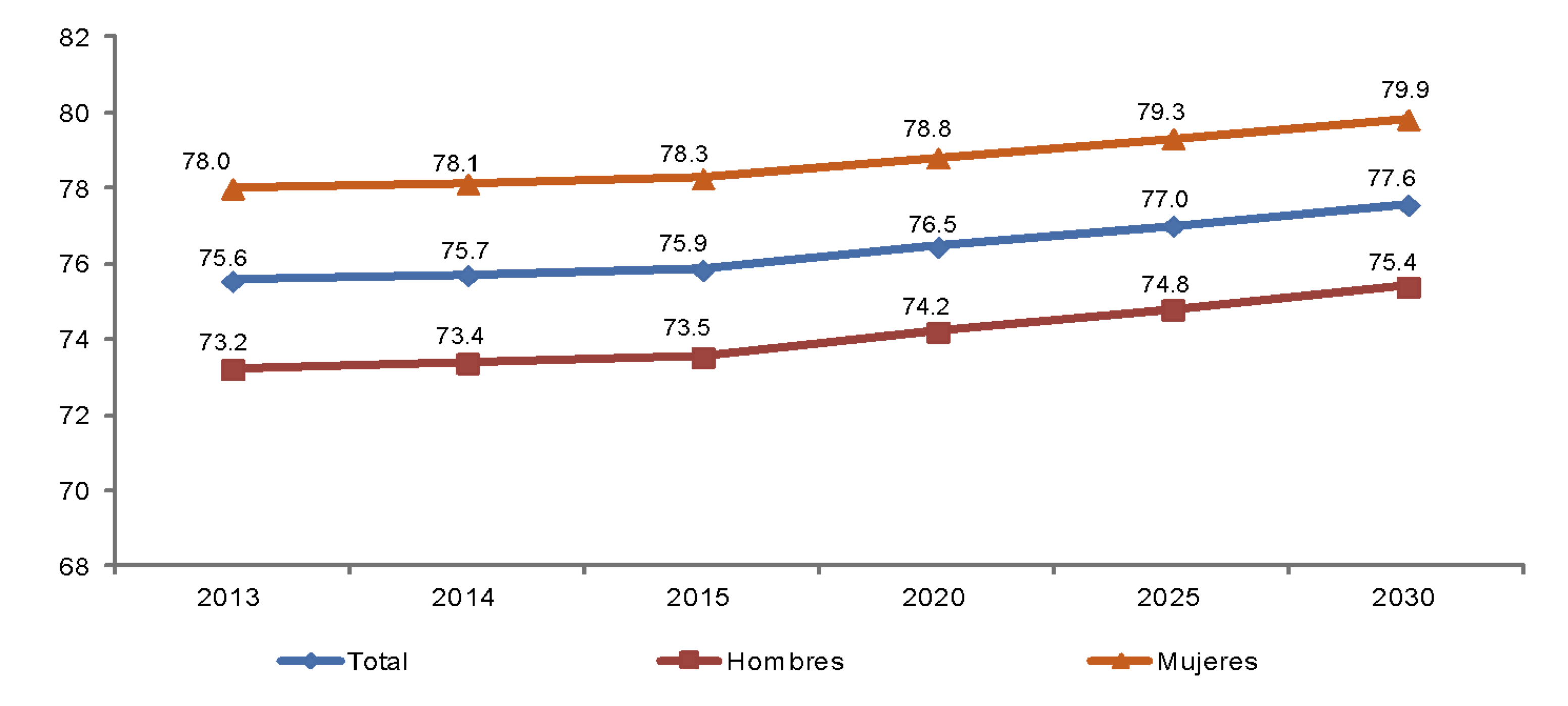 Al igual que en otras regiones del mundo, en nuestro país en las últimas décadas el nivel de sobrevivencia ha aumentado, mientras que el nivel de fecundidad ha disminuido. De acuerdo con el Centro Latinoamericano y Caribeño de Demografía (CELADE), México junto con otros países latinoamericanos como Argentina, Uruguay, Chile, Costa Rica, Colombia y Brasil, se encuentran en una transición demográfica avanzada, caracterizada por bajas tasas de fecundidad (menores de 2.5 y mayores de 1.5 hijos por mujer) y niveles de mortalidad considerados como ‘bajos’ e ‘intermedios’ que los coloca con una esperanza de vida igual o mayor a los 71 años. De acuerdo con información desprendida de las proyecciones que realiza el CONAPO, en Aguascalientes, esta situación se reafirma, en 2013 la tasa global de fecundidad es de 2.4 hijos por mujer, mientras que la esperanza de vida aumentó 75.6 años.