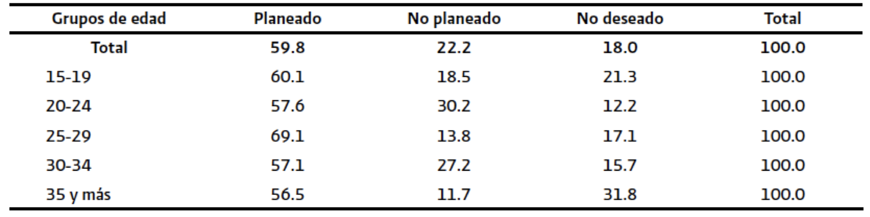 Distribución porcentual de mujeres actualmente embarazadas por grupos de edad según planeación y deseo de embarazo en Aguascalientes