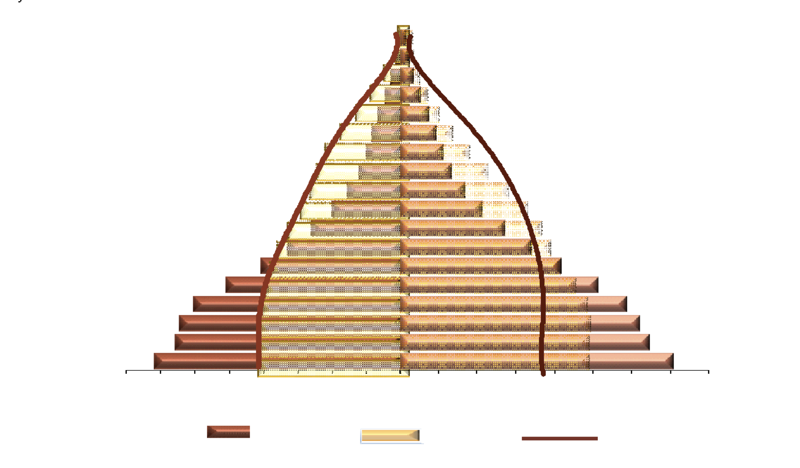 La reducción de la fecundidad y el aumento paulatino de la esperanza de vida han provocado cambios importantes en la estructura por edad de la población. En Aguascalientes, en el 2013, la base piramidal es más angosta lo que se manifiesta en una proporción de niños y jóvenes menor a la de 1990: en el primer grupo (niños menores de 15 años) la participación porcentual pasa de 40.6 a 30.5%, en tanto que la de jóvenes (15 a 29 años), disminuye de 29.7 a 27.1 por ciento; por su parte, el porcentaje de la población de 30 a 59 años aumenta de 23.8 a 34.3%, mientras que la de 60 y más años pasa de 5.9 a 8.1 por ciento.