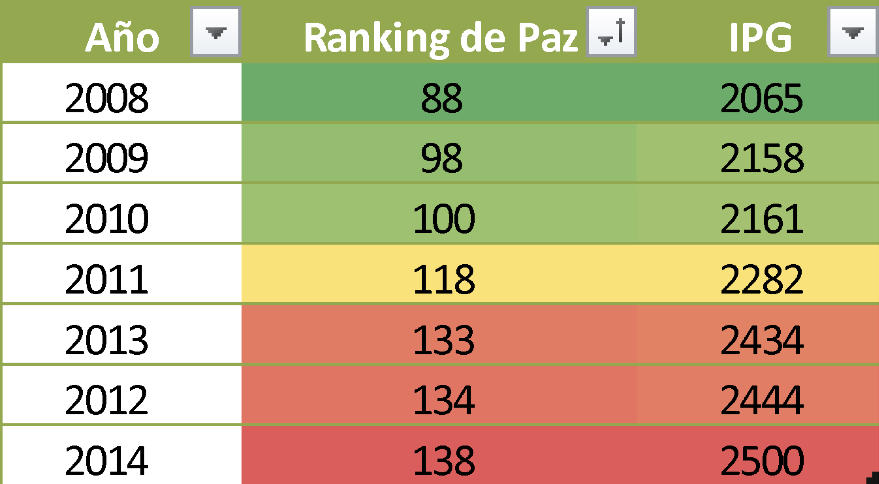 Fuente: Elaboración propia con datos del Institute for Economics and Peace