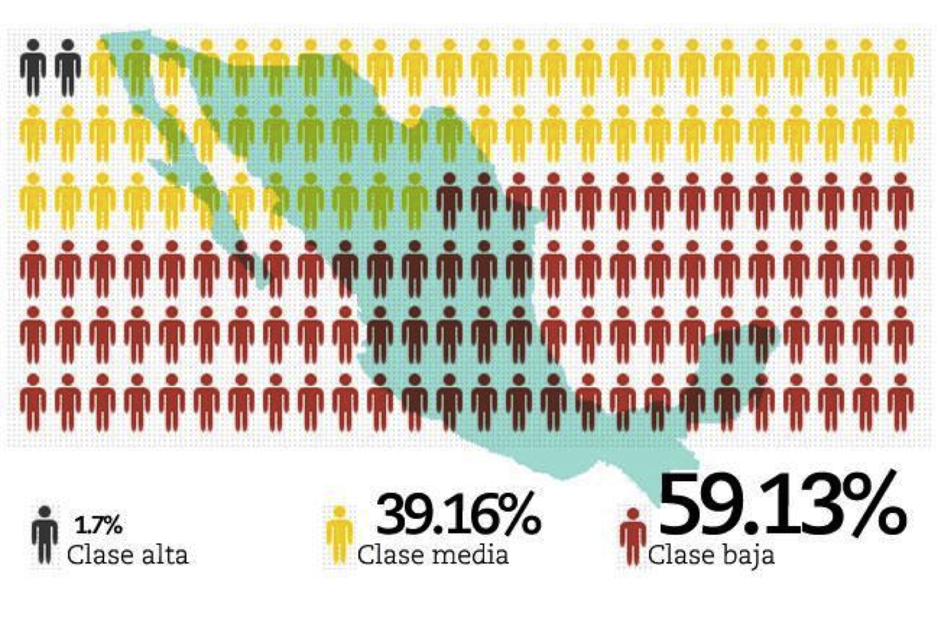 El PIB per cápita es un indicador de calidad de vida y en el caso de México, en 2013, fue de 8,003€ euros, con el que se sitúa en el puesto 63 del ranking y sus habitantes tienen, según este parámetro, un bajo nivel de vida con relación a los 181 países, máxime si consideramos que se trata de un promedio que esconde muchas asimetrías entre niveles socioeconómicos. Porque para la Organización de las Naciones Unidas (ONU), México no es un país de clase media, sino más bien uno con población mayoritariamente de clase baja, según cifras del propio INEGI.