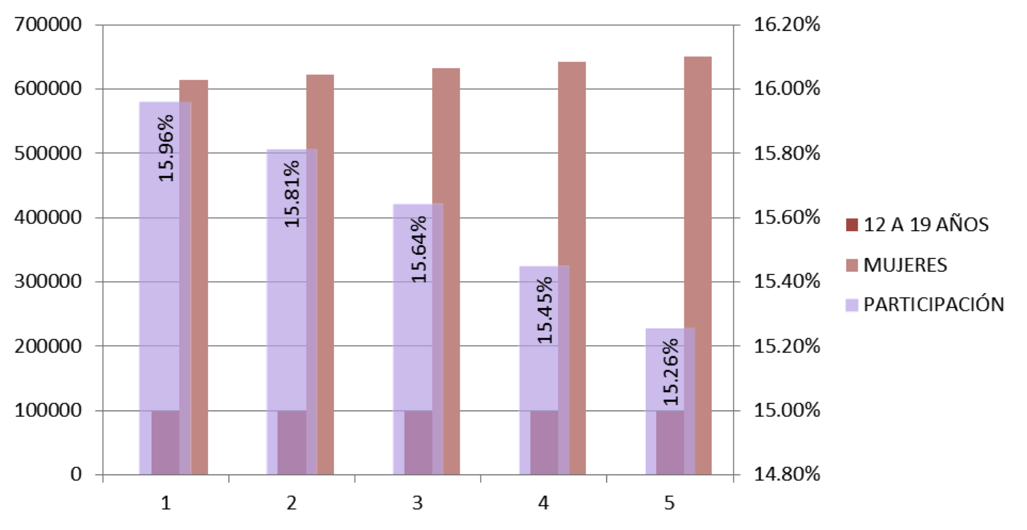 | MUJERES | 613,433 | 622,770 | 632,249 | 641,585 | 650,783 |