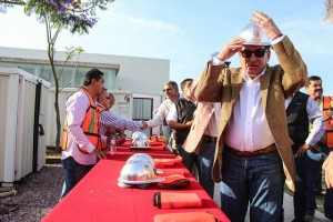 El siguiente punto en el itinerario fue la Isla San Marcos, donde se construye el lienzo charro que sustituirá al edificado en un predio irregularmente expropiado durante el mandato del también priista Refugio Esparza Reyes (1974 – 1980).
