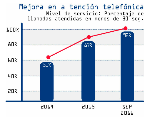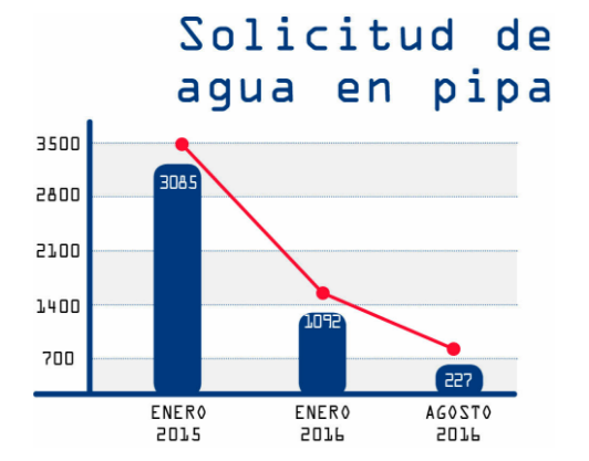 De acuerdo a los datos de la empresa, el 99.5 por ciento de la población tiene agua, incluyendo la zona rural del municipio; de enero de 2014 a agosto del 2016 se pasó de 30 por ciento de usuarios con más de 21 horas de servicio al 95 por ciento de ese total de usuarios. Señala Alessandro Reginato: “Cuando hablo de eficiencia es que la continuidad del servicio, hoy día, estamos en el 95 por ciento en términos de población que tiene un servicio continuo, hemos conseguido pasar del 40 al 95 por ciento de personas que tienen acceso al agua, ya no existen los tandeos, en el sentido en que no se utiliza como un servicio de operación, el tandeo es un sistema con el que se abre la válvula para una zona y otras se quedan sin servicio, ahora el servicio es continuo, todavía hay que trabajar porque hay colonias donde el tema es por las limitadas capacidades hidráulicas de las redes, por la altura, pues a ciertas horas del día hay reducción de la presión del agua, pero en términos generales toda la ciudad está con un servicio continuo, los pozos están prendidos todo el tiempo; lo que es una gran ventaja, al estar en servicio continuo, es casi imposible la contaminación de la redes de agua. En el decálogo se nos pedía una continuidad de 80 por ciento en la zona urbana y hoy día estamos a 95 por ciento, incluyendo la zona rural. Otro tema es la desinfección, el 99.5 por ciento de nuestras muestras en análisis cumplen con todas las normas, nuestras aguas están monitoreadas todo el tiempo para que cumplan con las normas de calidad de físico, químicas bacteriológicas; contamos con una planta de filtración para pozos con presencia de metales pesados, lo monitoreamos y lo tratamos; tenemos un sistema bastante eficiente en términos de atención a incidencias, si un usuario llama y dice que tiene un problema con el abasta, en un promedio de dos horas llegamos a su casa para ver qué está pasando, tenemos casi un 80 por ciento de eventos en los cuales reestablecemos el servicio en caso de una parálisis de un pozo, en menos de diez horas, es decir, si hay un problema eléctrico, de energía, si un pozo se daña, si se daña una bomba, en promedio nos tardamos menos de diez horas en reestablecer el servicio, es un buen indicador si lo comparamos con, por ejemplo, la CFE, que te dice: en 72 horas, casi siempre es menos, pero como referencia funciona; estamos cambiando nuestros procesos para que toda actividad realizada tenga un indicador que nos mida, y cada indicador se relacione con el servicio y quien lo recibe”.