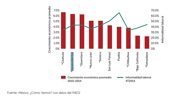 El propio IMCO indica que de acuerdo con el ICRE-E 2016, los cinco estados con el más bajo desempeño en materia de cumplimiento educativo son Chiapas, Oaxaca, Michoacán, Veracruz y Guerrero, mientras el estado con el mejor desempeño es Aguascalientes. No es coincidencia que los cinco estados peor calificados se encuentren en la lista de los estados más rezagados y económicamente estancados, sino que refuerza la idea de que sin la disponibilidad de un acervo de capital humano capaz y productivo, no hay mucho que se pueda lograr en materia económica.